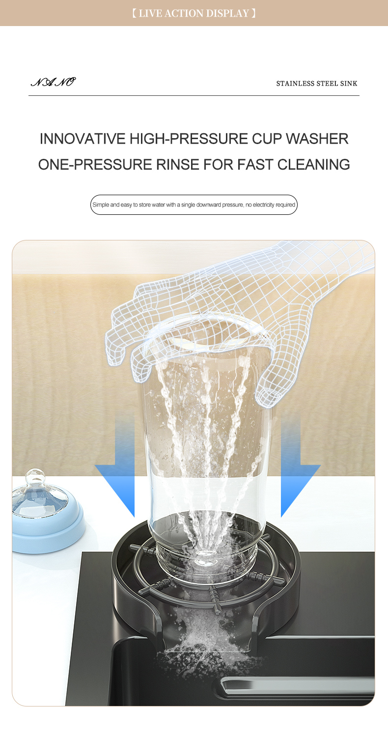 Completing the ensemble is our 360-degree rotational pull-out faucet, offering multiple water spray styles to cater to your specific needs. With our sinks, experience the perfect fusion of style, durability, and innovation in your kitchen space.