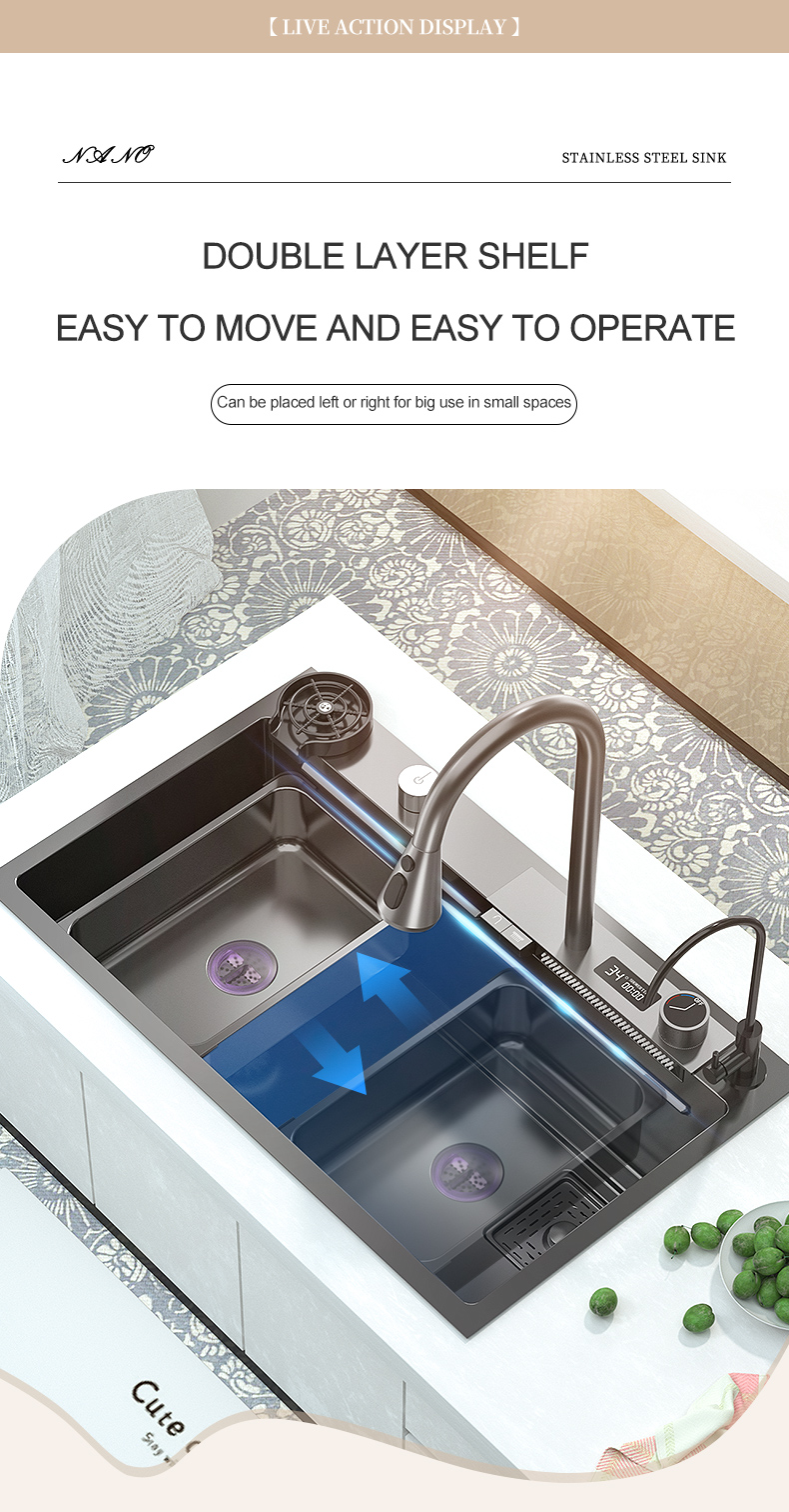 Crafted from premium handmade 304 stainless steel, an industry-leading material, our sinks boast extraordinary features that redefine excellence. The exceptional durability and rust resistance are complemented by soundproofing technology, creating a tranquil kitchen environment by minimizing the noise of running water.