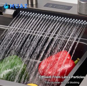 Cleaning becomes a breeze with our sinks, thanks to the premium finish and coating that repel oil and grease. The Quick Drainage feature of our Workstation sinks is designed with your convenience in mind, featuring gently rounded corners for easy cleaning and maintenance. The Guideline Design, with a slight slope at the bottom, directs water to the drain for swift drainage, leaving your sink clean and dry.