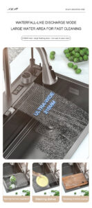 Completing the ensemble is our 360-degree rotational pull-out faucet, offering multiple water spray styles to cater to your specific needs. With our sinks, experience the perfect fusion of style, durability, and innovation in your kitchen space.