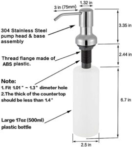 Our Sink Soap Dispenser is not only a functional addition to your kitchen or bathroom but also a stylish one. Follow our straightforward operation instructions: move the locking nut, place the drain washer on the threaded flange, insert the flat end of the pump tube into the pump, center the washer below the flange. Attach the screw flange through the hole on the tabletop, below the hand groove, and tighten the locknut around the flange securely. Thread on the bottle, and you’re all set for a superior and efficient soap dispensing experience.